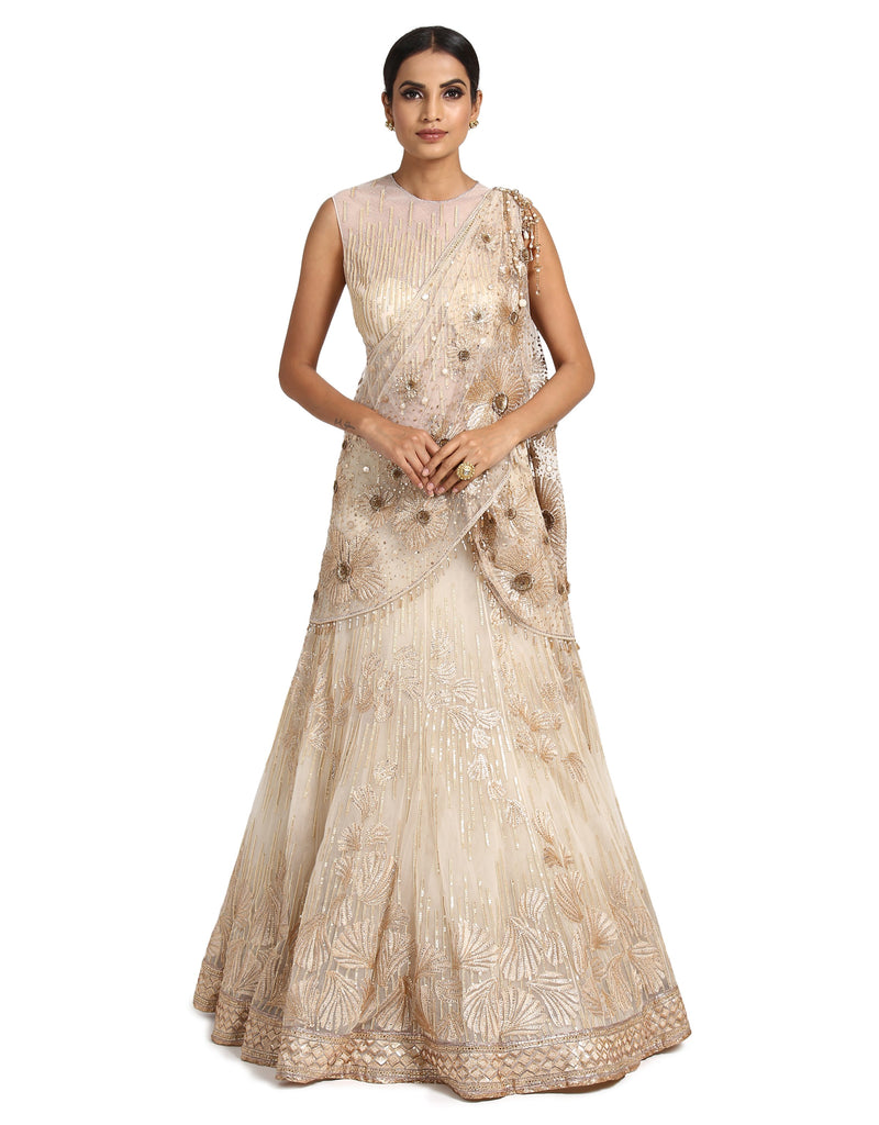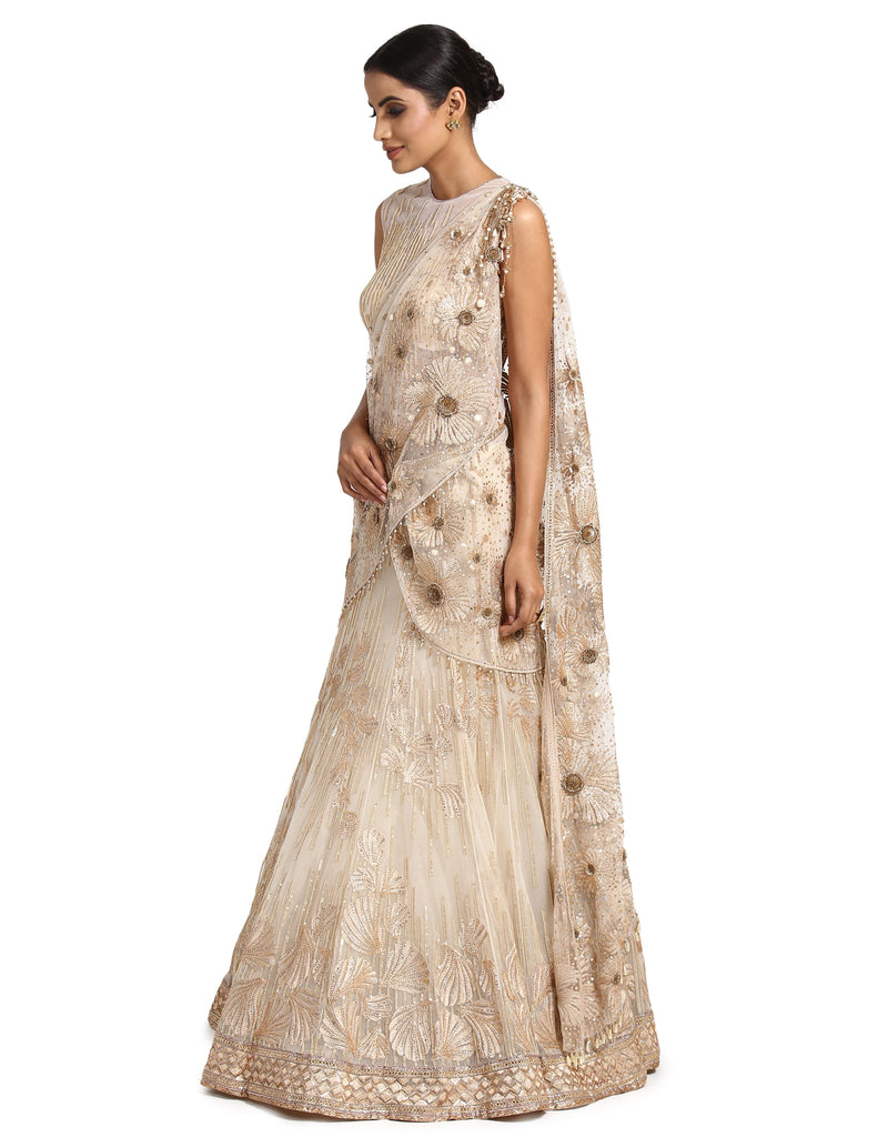 Lehenga Saree- Ivory