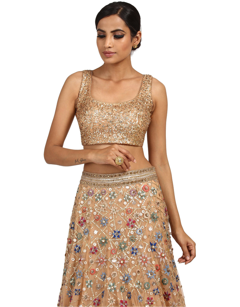 Handcrafted Lehenga with Sequin Blouse- Peach